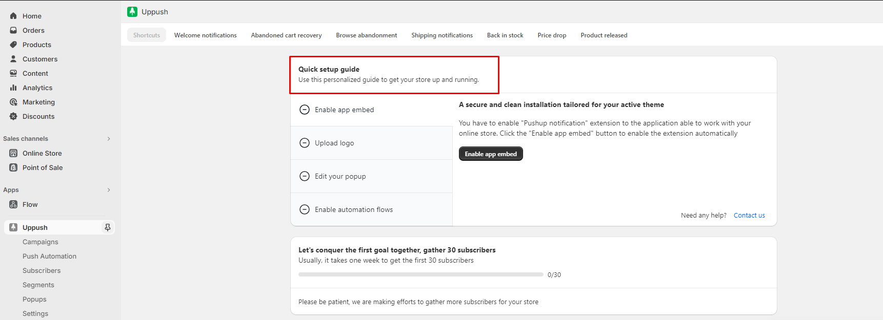 Before you start sending campaigns, you need to get subscribers. With Uppush, store visitors are shown a browser prompt once they land on your store that gets them to subscribe.
