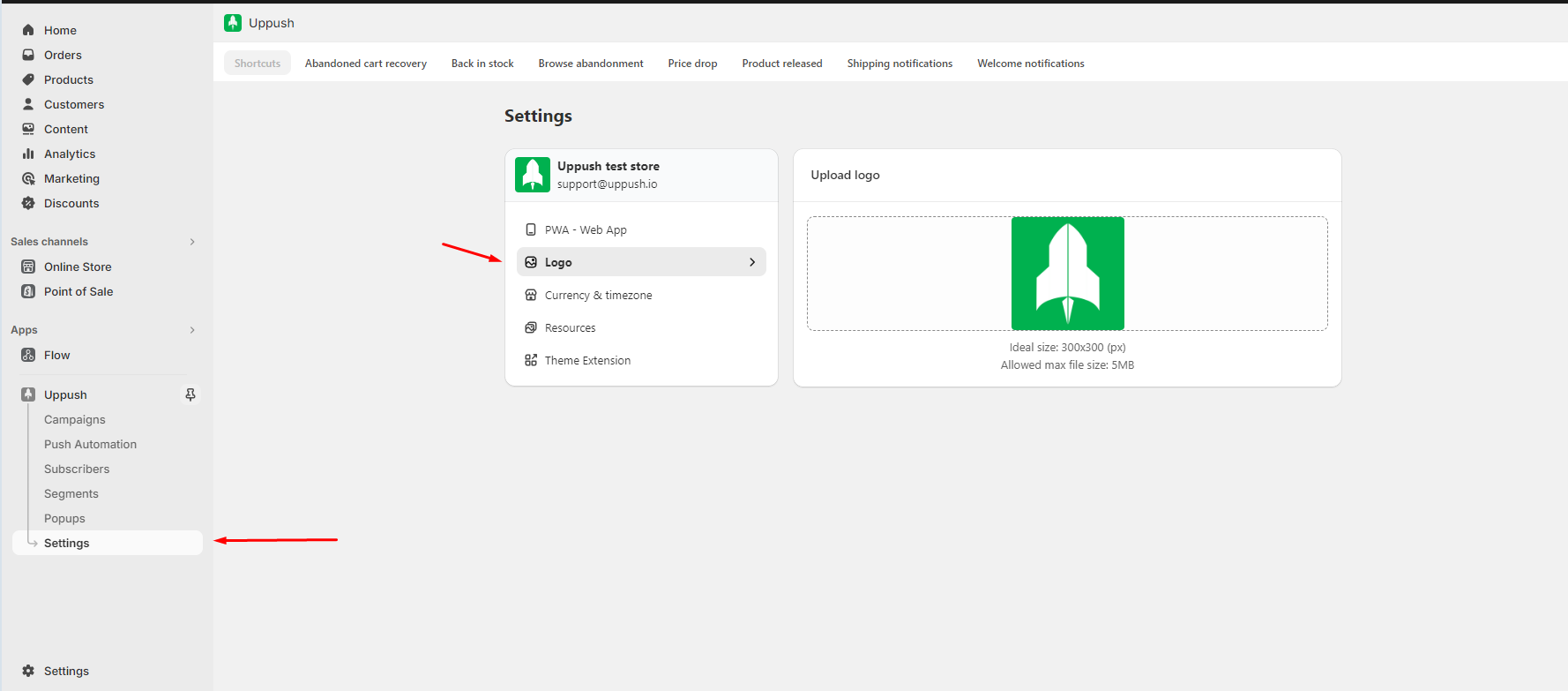 When sending web push notifications, your brand logo is prominently displayed for your subscribers to see. To ensure a cohesive brand experience, it's essential to upload your logo to your Uppush dashboard before initiating any campaign.