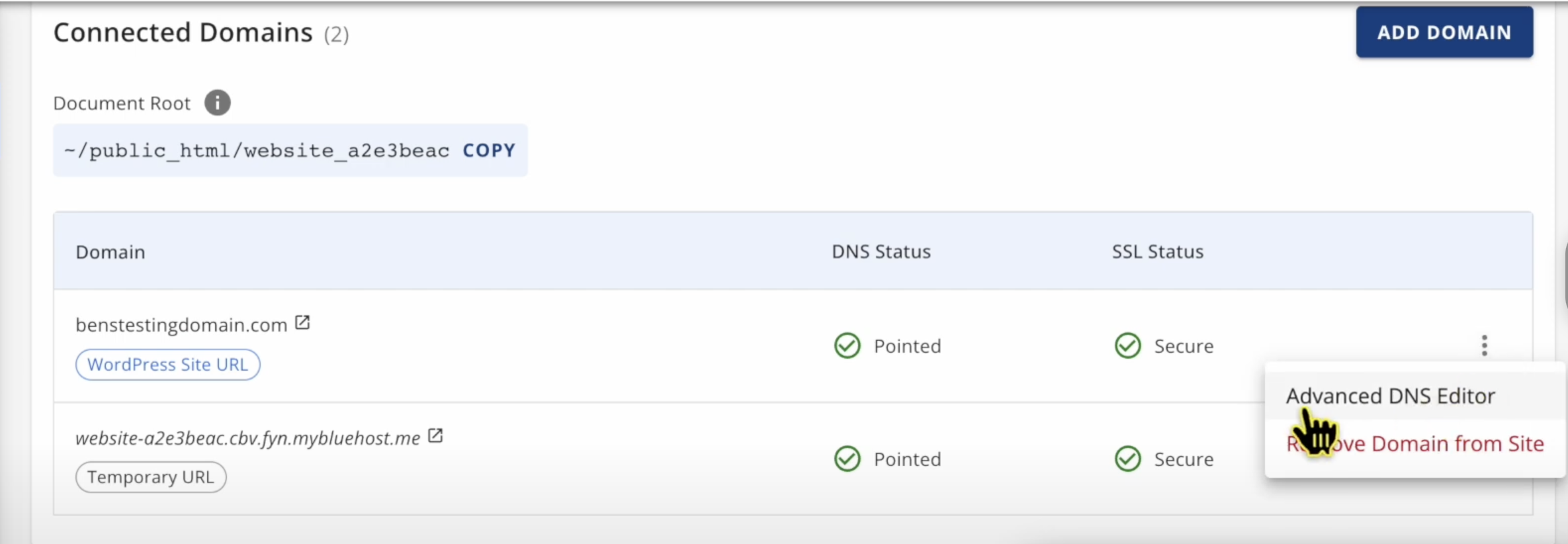 2. Click on the three dots next to your domain name and select **Advanced DNS Editor**.